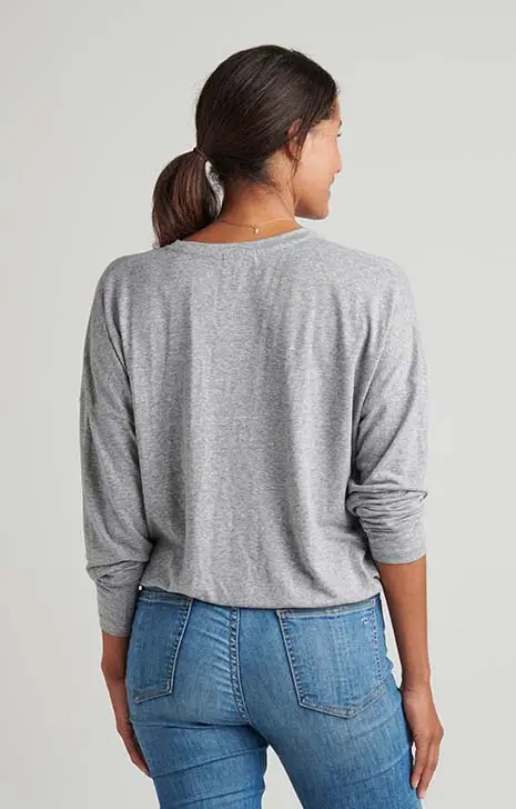 HempWorx Bella Crop Top with a hemp mix, cropped, long sleeves, a crew neck, and a bottom cinch tie. Drop shoulder. Excellent for relaxing, leading an active outdoor lifestyle, doing mild exercises, or tossing on after a workout to meet friends for coffee. Use with HempWorx Amelia Sweatpants