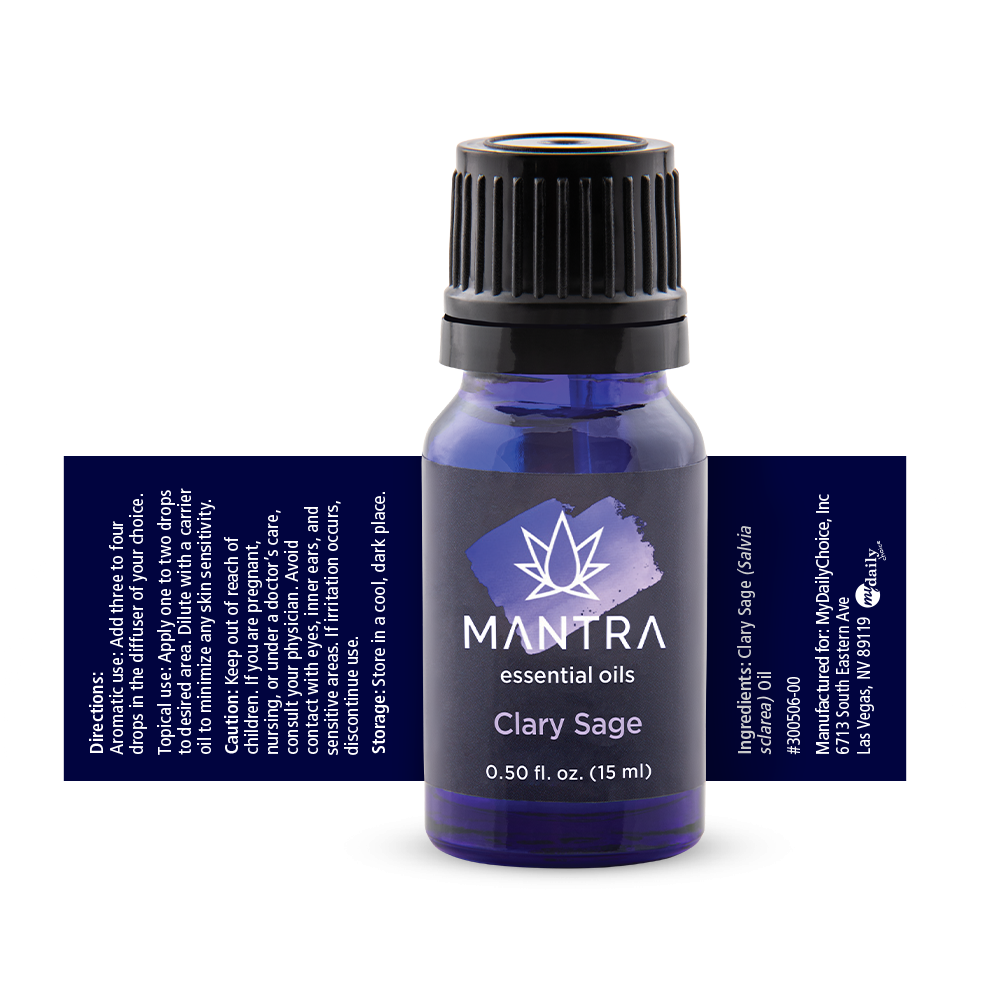 Mantra Essentials Oil – Clary Sage should be used when you need to clear your head, soothe your spirit, and take a break from the intensity of the present. Mantras’ Clary Sage Single Oil, one of the most calming and balanced essential oils, encourages a calm environment for all the times of day when you need to unwind, refocus, and gather your senses. Discover for yourself Clary Sages’ calming qualities. possesses a relaxing scent that makes one feel calm and peaceful boosts the appearance of healthy skin and hair may lessen the appearance of pollutants and skin irritations A calming scent to go with a sound night’s sleep. Use with HempWorx Mantra Chakra Value Pack